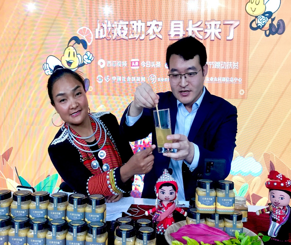 2020年是脫貧攻堅全面收官之年,面對突如其來的疫情,群眾的增收,脫貧攻堅的鞏固和提升需要尋找新的發(fā)力點。危中有機,西盟縣委縣政府確定參加抖音和今日頭條、西瓜視頻聯(lián)合發(fā)起的“戰(zhàn)疫助農(nóng)”公益項目。孫海軍同志主動請纓,參與“縣長來直播”,主要任務(wù)是幫助農(nóng)產(chǎn)品找到銷路。2020年3月26日,孫海軍同志化身主播,通過西瓜視頻平臺向百萬網(wǎng)友推薦西盟的天然蜂蜜產(chǎn)品。據(jù)統(tǒng)計,當日活動中,直播間人氣194萬,三個小時累計銷售西盟百花蜜3.9萬件,累計銷售額達237.4萬元,有效帶動了農(nóng)特產(chǎn)品線上銷售,幫助農(nóng)民群眾減少經(jīng)濟損失。