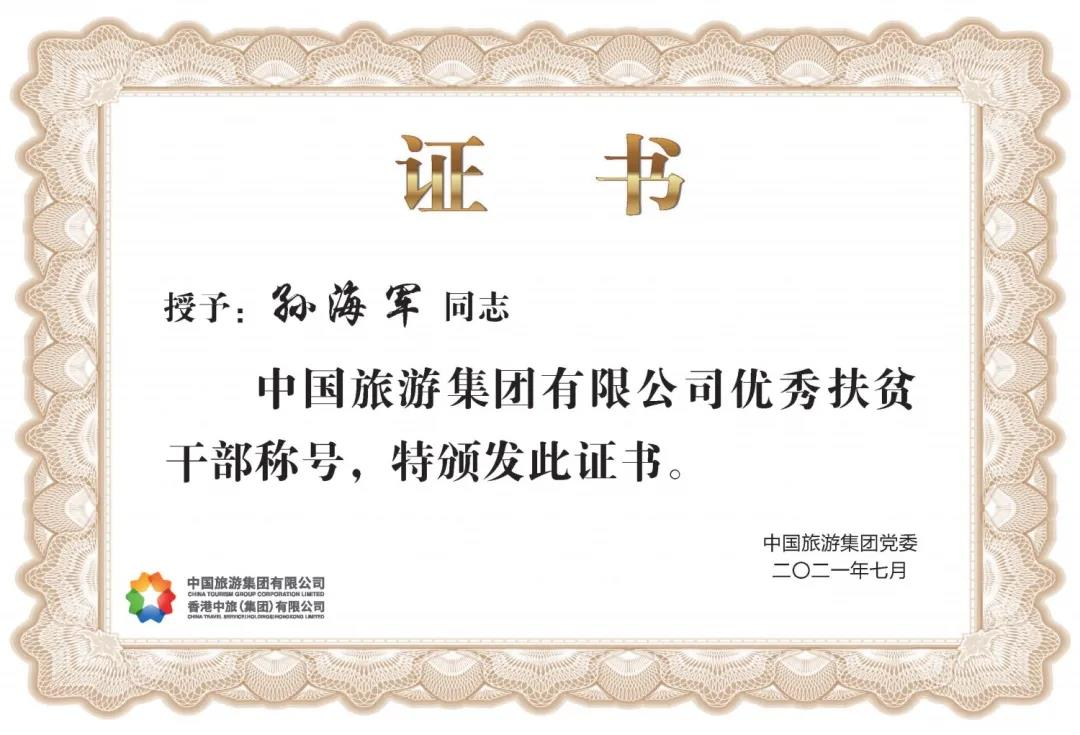 中國旅游集團中免股份有限公司黨群工作部被評為“中國旅游集團2020年度優(yōu)秀扶貧單位”;黨群工作部組織建設(shè)經(jīng)理孫海軍被評為2020年度優(yōu)秀扶貧干部。