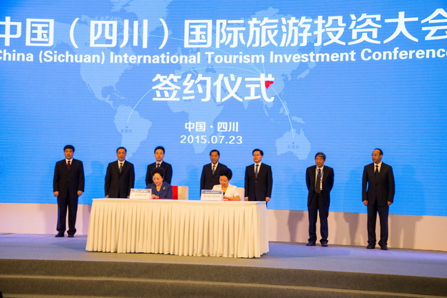 7月23日,集團(tuán)姜巖總經(jīng)理、鄭江副總會(huì)計(jì)師、戰(zhàn)發(fā)部陳賢君總經(jīng)理、資產(chǎn)板塊田群總經(jīng)理、景區(qū)板塊曲濤常務(wù)副總經(jīng)理等一行參加了在成都舉辦的“中國(guó)(四川)國(guó)際旅遊投資大會(huì)”。會(huì)上,姜巖總經(jīng)理代表集團(tuán)與四川省政府簽訂了《促進(jìn)中國(guó)港中旅集團(tuán)與四川省政府關(guān)於旅遊業(yè)發(fā)展戰(zhàn)略合作協(xié)定》。四川省委書記王東明、省長(zhǎng)魏宏、國(guó)家旅遊局局長(zhǎng)李金早、中國(guó)房地產(chǎn)業(yè)協(xié)會(huì)會(huì)長(zhǎng)劉志鋒等領(lǐng)導(dǎo)出席會(huì)議。中國(guó)國(guó)旅集團(tuán)董事長(zhǎng)兼總經(jīng)理王為民、華僑城集團(tuán)公司副總裁劉平春 、大連萬達(dá)集團(tuán)董事長(zhǎng)王健林、新希望集團(tuán)董事長(zhǎng)劉永好等120多家境內(nèi)外知名旅遊企業(yè)負(fù)責(zé)人參加了會(huì)議。