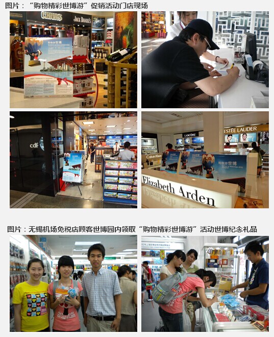 中免集團利用2010年上海世博會所帶來的商機,聯(lián)合集團下屬零售門店及品牌供應商進行了以“購物精彩世博游”為主題的聯(lián)合促銷活動。活動歷時4個月,從2010年5月1日開始,并于2010年8月31日精彩落幕。