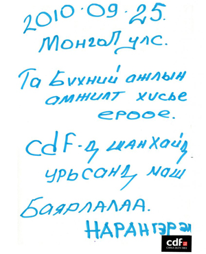 “我家是在蒙古國,我經常會往返內蒙古和外蒙古,這次是在在二連浩特免稅店購物的時候 ,當時我就填了一張抽獎券,幸運地中了’上海世博游大獎’”