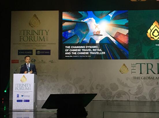 2017年11月2日,由穆迪報(bào)道、國(guó)際機(jī)場(chǎng)協(xié)會(huì)(ACI)和亞太國(guó)際機(jī)場(chǎng)協(xié)會(huì)(ACI Asia Pacific)聯(lián)合主辦,泰國(guó)王權(quán)國(guó)際集團(tuán)和泰國(guó)機(jī)場(chǎng)公司共同承辦的三方論壇在泰國(guó)曼谷拉開帷幕。上午,穆迪公司總裁Martin Moodie、國(guó)際機(jī)場(chǎng)協(xié)會(huì)(ACI)總干事Angela Gittens以及泰國(guó)機(jī)場(chǎng)高級(jí)執(zhí)行副總裁Sasisubha Sukontasap分別致辭,共同開啟盛會(huì)。來(lái)自世界各地的機(jī)場(chǎng)、零售商和品牌代表匯聚一堂,共同探討機(jī)場(chǎng)商業(yè)未來(lái)發(fā)展趨勢(shì)。中國(guó)免稅品(集團(tuán))有限責(zé)任公司(以下簡(jiǎn)稱“中免集團(tuán)”)總經(jīng)理陳國(guó)強(qiáng)受邀參加論壇。