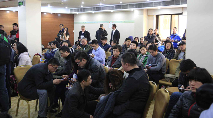 馬航MH370航班乘客家屬在酒店會議室焦急等待中