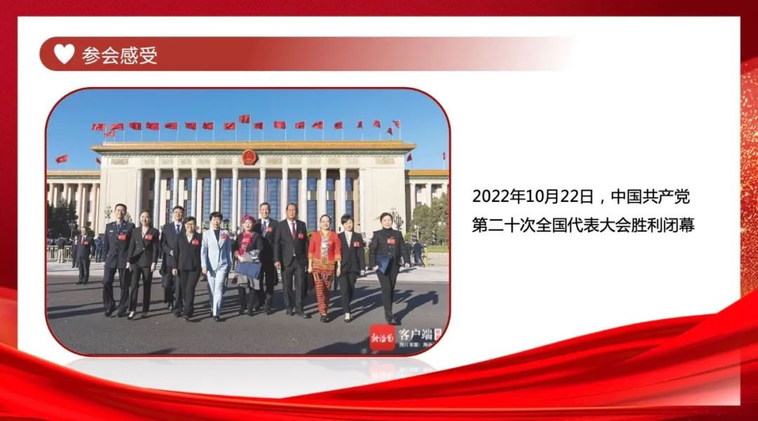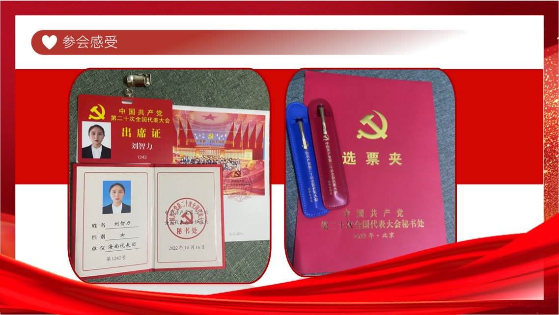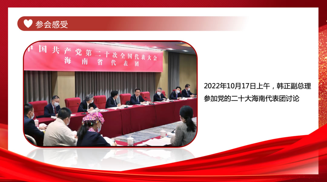 宣講會上,她分享了參加黨的二十大的所見所聞所感,并從新時代青年、基層黨員、海南旅游零售行業(yè)從業(yè)者三個身份,就如何貫徹黨的二十大精神分享學(xué)習(xí)體會。