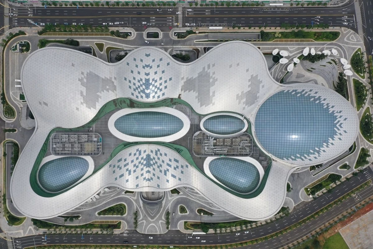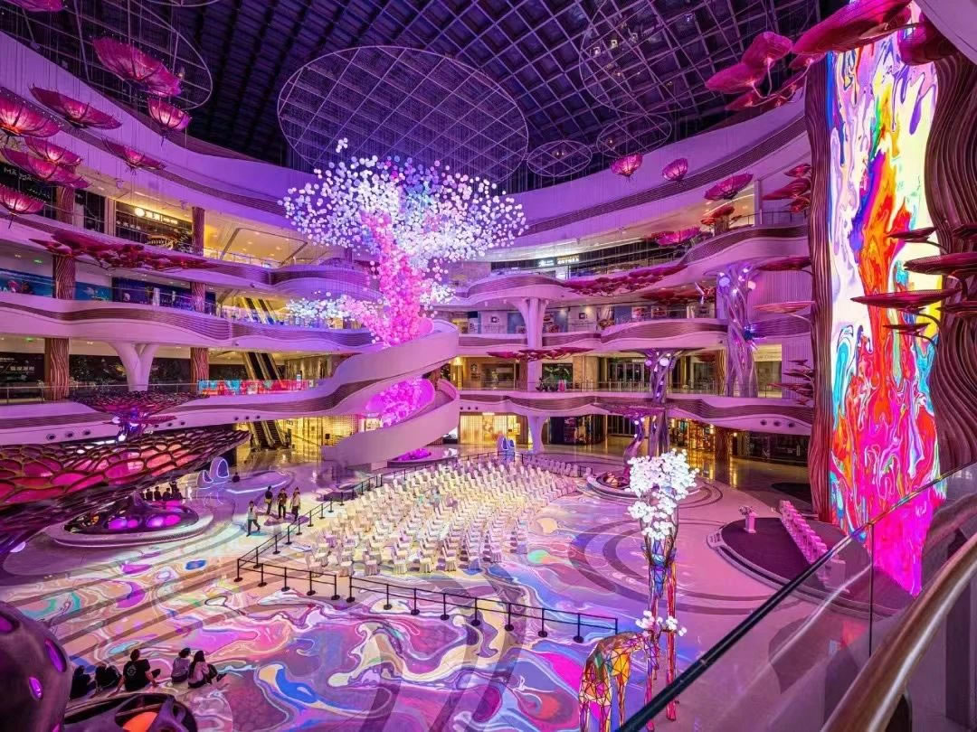 ▲??趪H免稅城項目“AURA天際秘林”中庭(攝于調(diào)試階段)