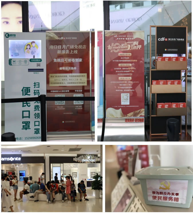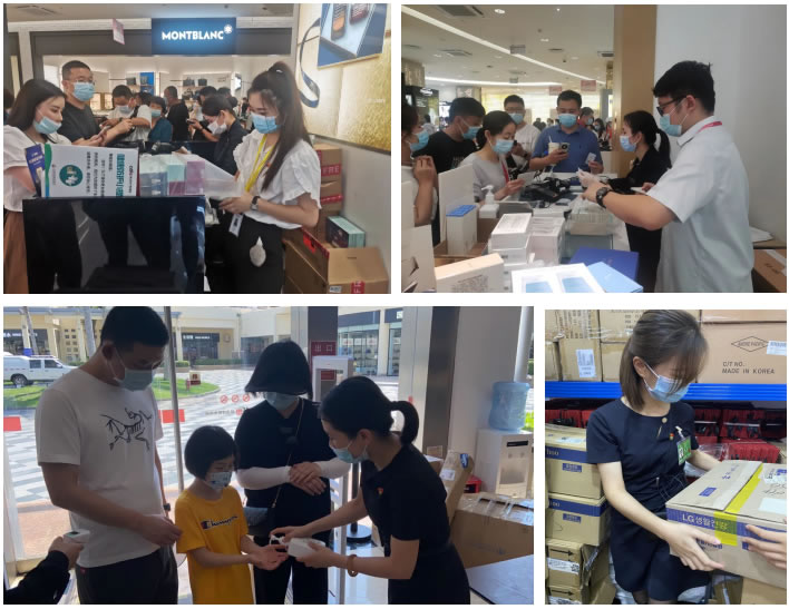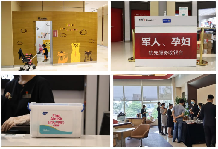 各門店結(jié)合實際情況,考慮顧客購物細(xì)節(jié),提供了多項貼心服務(wù):放置離島免稅政策說明牌,防疫溫馨提示牌、店面各品牌中英文導(dǎo)購圖,方便顧客了解相關(guān)信息;人流密集區(qū)域加裝空調(diào),調(diào)節(jié)舒適溫度;放置6套沙發(fā)、14條長椅,配備客用飲水機(jī)和紙杯,方便顧客休息;提供女性用品、行李寄存、貴重物品遺失招領(lǐng)、嬰兒車服務(wù)和傘套機(jī)服務(wù),加強(qiáng)細(xì)節(jié)服務(wù);增加25部移動POS機(jī),節(jié)省顧客排隊等候時間;門店出入口安裝人體熱成像測溫儀,提高防疫體溫檢測效率;配備口罩、手消液和醫(yī)用濕紙巾等防疫物資,方便顧客做好個人防護(hù);設(shè)置客服專線,確保在1小時內(nèi)給予顧客答復(fù)。