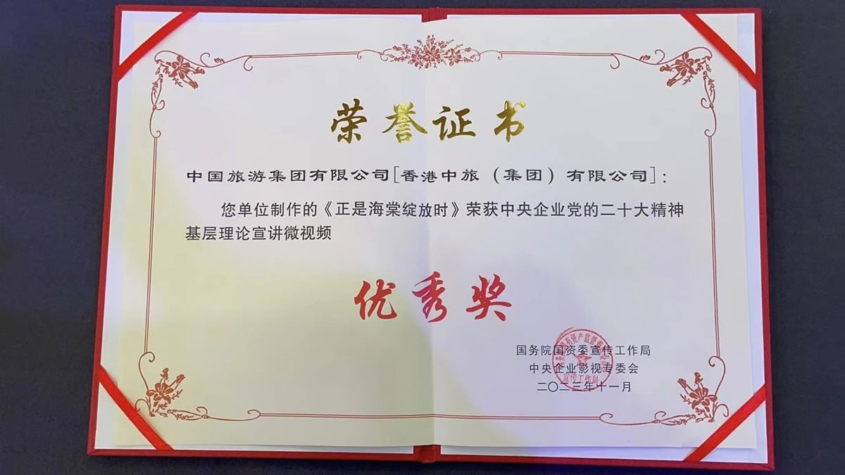 近日,由國務院國資委宣傳工作局主辦的2023年中央企業(yè)社會主義核心價值觀主題微電影(微視頻)展映征集活動和中央企業(yè)黨的二十大精神基層理論宣講優(yōu)秀微視頻展示活動在京成功舉辦。兩項活動各評選出百部優(yōu)秀作品,其中,由中國旅游集團選送,中免集團三亞市內免稅店有限公司(中國旅游集團中免股份有限公司全資子公司)拍攝制作的微視頻《正是海棠綻放時》榮獲“中央企業(yè)黨的二十大精神基層理論宣講微視頻”優(yōu)秀獎。