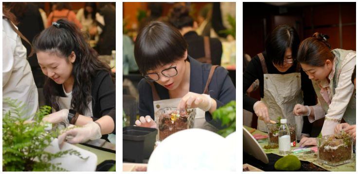 其中,微景觀藝術(shù)沙龍全天分為四場,公司總部200余名女性職工積極參與。活動期間,學(xué)員在老師的帶領(lǐng)下,通過聽、聞、看、觸,打開并提升自我的感知力,在與自然共處的同時,擁抱自己,接納自己。
