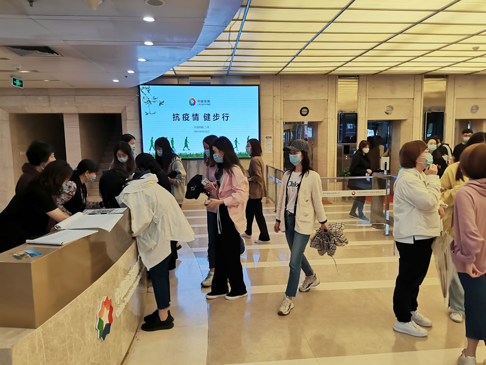 瀝瀝細雨洗凈了金秋的北京,午后天空放晴,總部在職員工陸續(xù)從公司出發(fā),沿著“亮馬河國際風情水岸”邁開了矯健的步伐。13時,員工持《通行卡》分散出發(fā),沐浴清新空氣,瀏覽垂柳翠荷,沿著水榭步道向著3公里外的折返點進發(fā)。工作人員在開闊的折返地,為微微冒汗趕來的同事在《通行卡》上做好標識,為大家加油鼓勁。15時30分,從折返點返程的員工陸續(xù)到達終點,向工作人員交回《通行卡》,每個人的臉上都洋溢著喜悅。