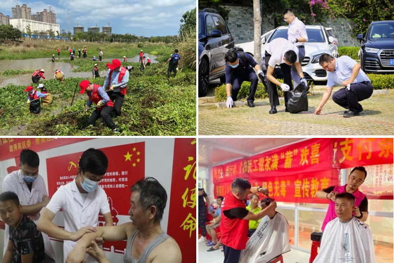 中免(??冢┩顿Y公司黨支部聚焦服務工程建設、豐富企業(yè)文化、踐行社會責任等方面把實事辦實辦好。為??趪H免稅城項目員工“送清涼”,購置了防暑防曬物資,備好冰鎮(zhèn)綠豆湯,不定期推出“驚喜菜”。精心打造“黨史文化墻”,設立“圖書角”,開展“微課堂”讀書活動,為員工訂閱報紙期刊,開展職工趣味運動會、友誼籃球賽,全面更新公司形象展示標識和宣傳欄,設置新人榜,不斷打造企業(yè)文化新亮點。黨支部聯(lián)合當?shù)毓?、共青團等機構共同開展環(huán)保志愿活動和公益普法活動,提供免費體檢、義剪服務,以實際行動關愛自貿港基層建設者,彰顯央企風范。